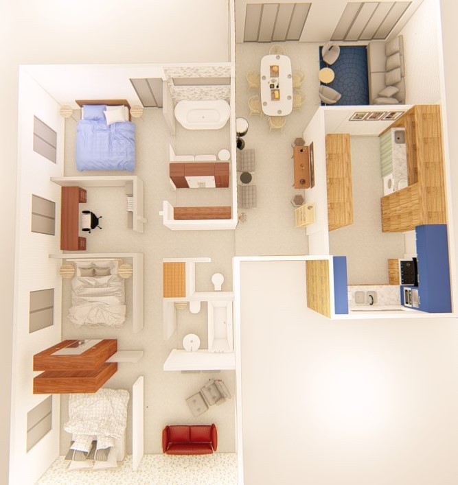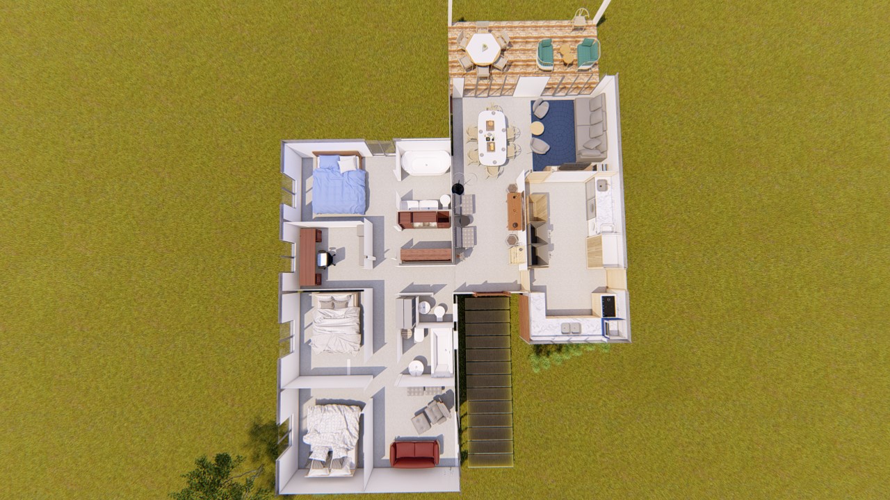 Vivienda estilo mediterráneo de 1 nivel caracterizada fundamentalmente por la simplicidad en su volumen, flexibilidad para el crecimiento, fluidez entre los espacios interiores y exteriores. Su estilo es fresco, alegre y cálido la hace sustentable energéticamente, generando bajas necesidades de climatización e iluminación artificial.